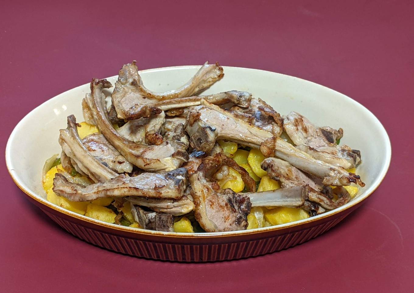 Fritura de lechal con patatas y pimiento